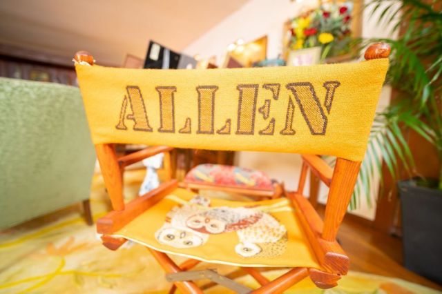 Betty loved to do needlepoint as a hobby, and there are lots of her pieces available in the auction, including this amazing director’s chair that she made for Allen. He must have liked owls, too, because there are several lots of owl figurines and jewelry.