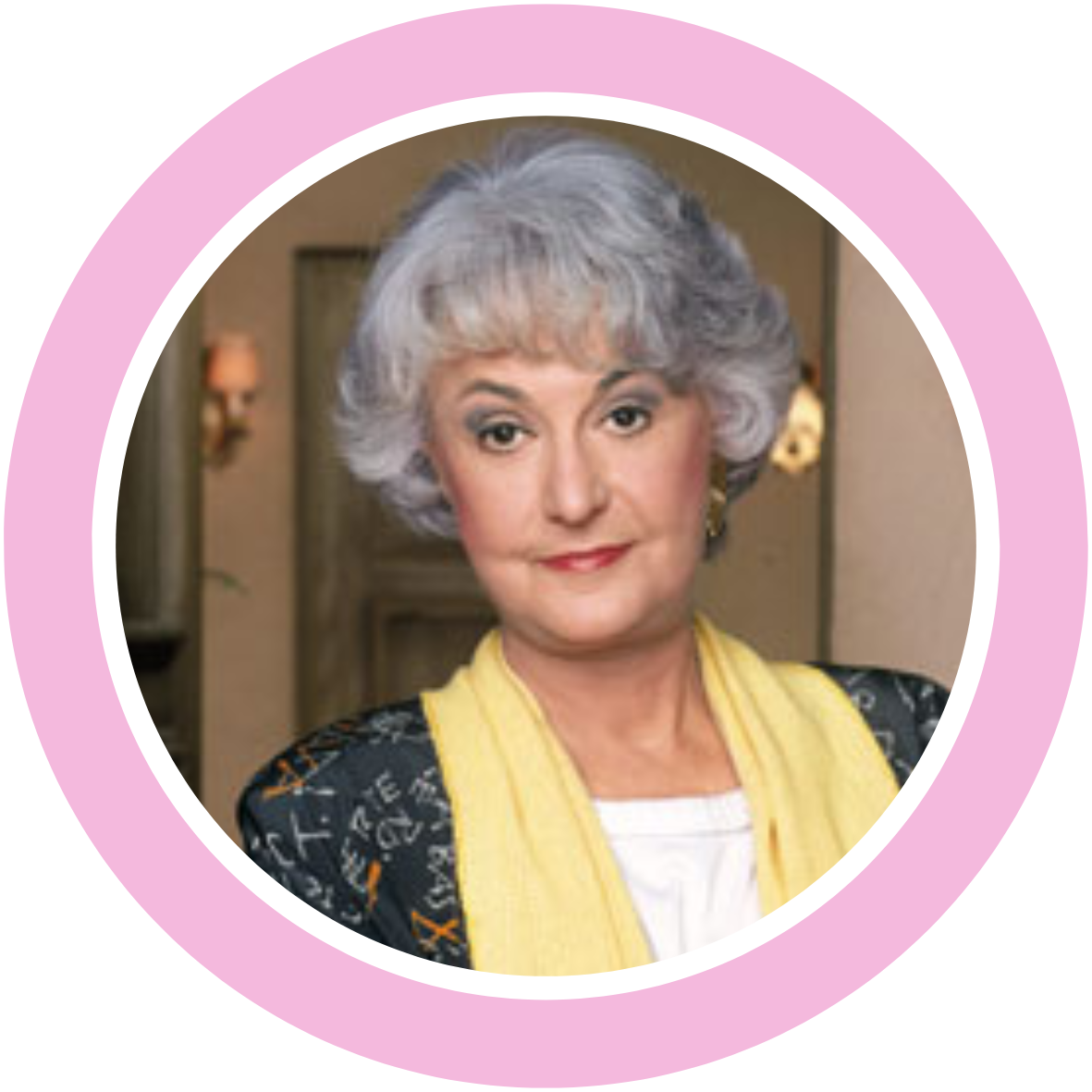 Dorothy’s style is probably the hardest of the four to get just right since so many of her signature pieces were original designs by Golden Girls costume designer extraordinaire, Judy Evans Steele. My advice is to shop your closet for a button down shirt, preferably in white. Next, buy an oversized sweater vest to layer over it. With the collar you can either leave it open and pull it out across the top of the vest, or try buttoning it and pulling it up to create a funnel neck.
