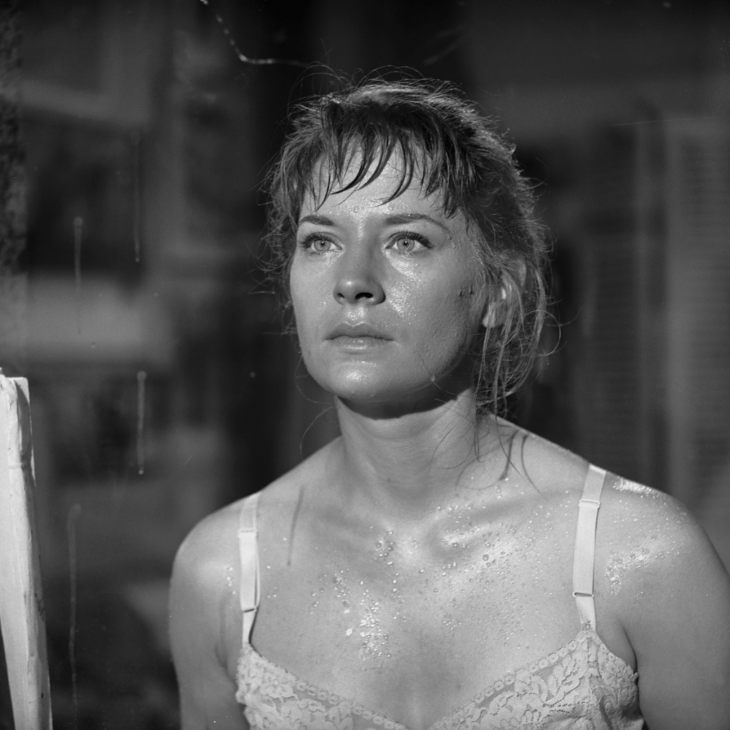 Everyone’s favorite lesbian (lesbian?), Jean (Lois Nettleton), starred in one of the most prescient episodes of The Twilight Zone, “The Midnight Sun” as Norma, an artist who’s living with her landlady as one of the last two residents of New York City. It’s almost midnight, but it’s 110-degrees outside because the Earth’s orbit has suddenly changed, moving ever closer to the sun. Or is it? This episode was a metaphor for nuclear warfare when it first aired in 1961, but it certainly fits the challenges of climate change today.