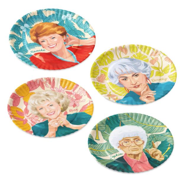 This cheesecake stand from Hallmark is almost too perfect for words! It features beautiful artwork of each of the Girls around the base along with clever details reminiscent of the wicker furniture in the living room. I love the extra detail of “get the cheesecake” stamped on top, too.