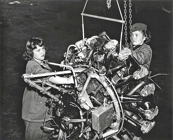 Women’s Reserve Members doing engine repair and assembling a .50 caliber machine gun (Wikipedia)